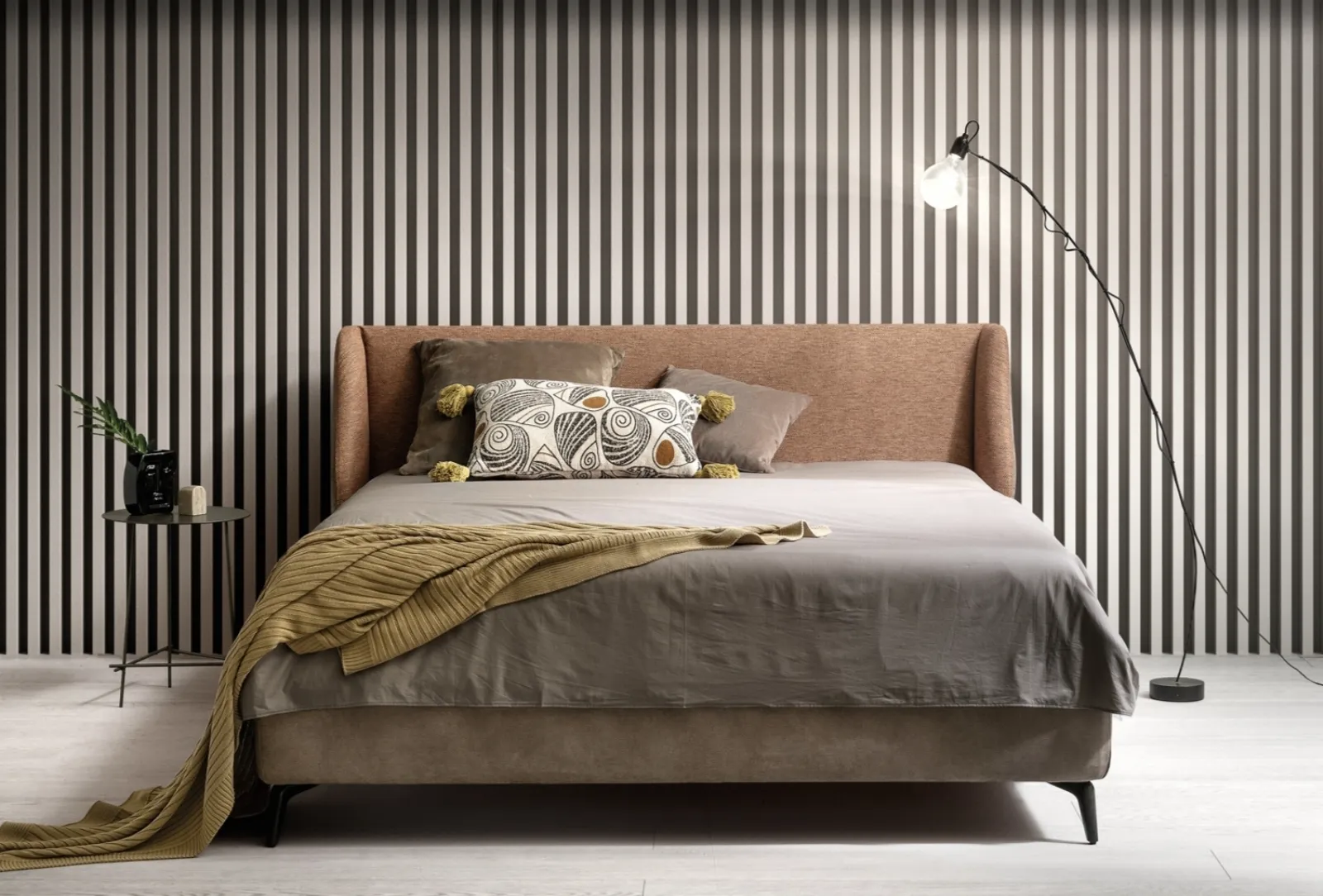 Scopri nel nostro showroom una ricca gamma di Letti imbottiti, mobili e oggetti accessori per la zona notte delle migliori marche. Con il Letto matrimoniale con testiera Hug di Bside del noto e rinomato marchio, leader del settore, potrai completare la tua zona notte garantendoti comfort, praticità e un design pulito. Durata dei materiali e grande comfort sono gli ingredienti che connotano tutti i prodotti della firma, tra cui anche il letto in tessuto nella fotografia. Se desideri creare un'ambientazione intima e rilassante, il modello visibile in foto fa per te: nella stanza del relax dovrai creare un'ambientazione rilassante, per farti ritemprare le energie psichiche e fisiche ogni notte.