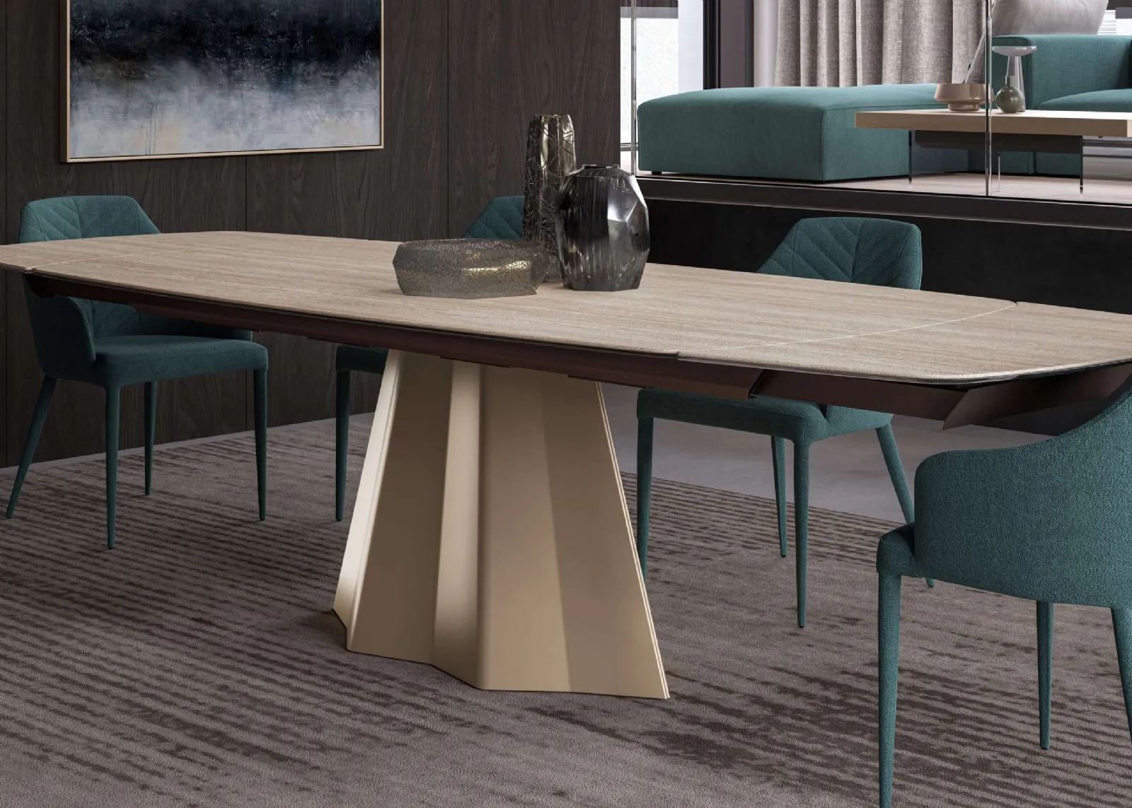 Prediligi i mobili e complementi in ceramica dei migliori produttori per completare con funzionalità i tuoi spazi senza mai trascurare l'estetica. Nel nostro sito dedicato all'Arredamento Casa potrai trovare tutto ciò di cui hai necessità per la zona giorno o la cucina. Se vuoi rinnovare i mobili design che hai in casa o acquistarli ex novo, da noi potrai vedere dal vivo le soluzioni più belle in commercio. In showroom ti attende un ricco catalogo di Tavoli allungabili dei migliori produttori, tra cui anche il modello da pranzo mostrato in foto.
